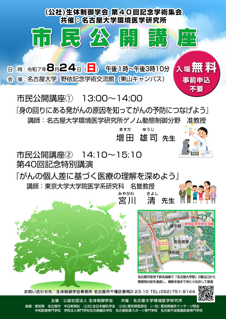 環境医学研究所と生体制御学会共催の市民公開講座を開催します