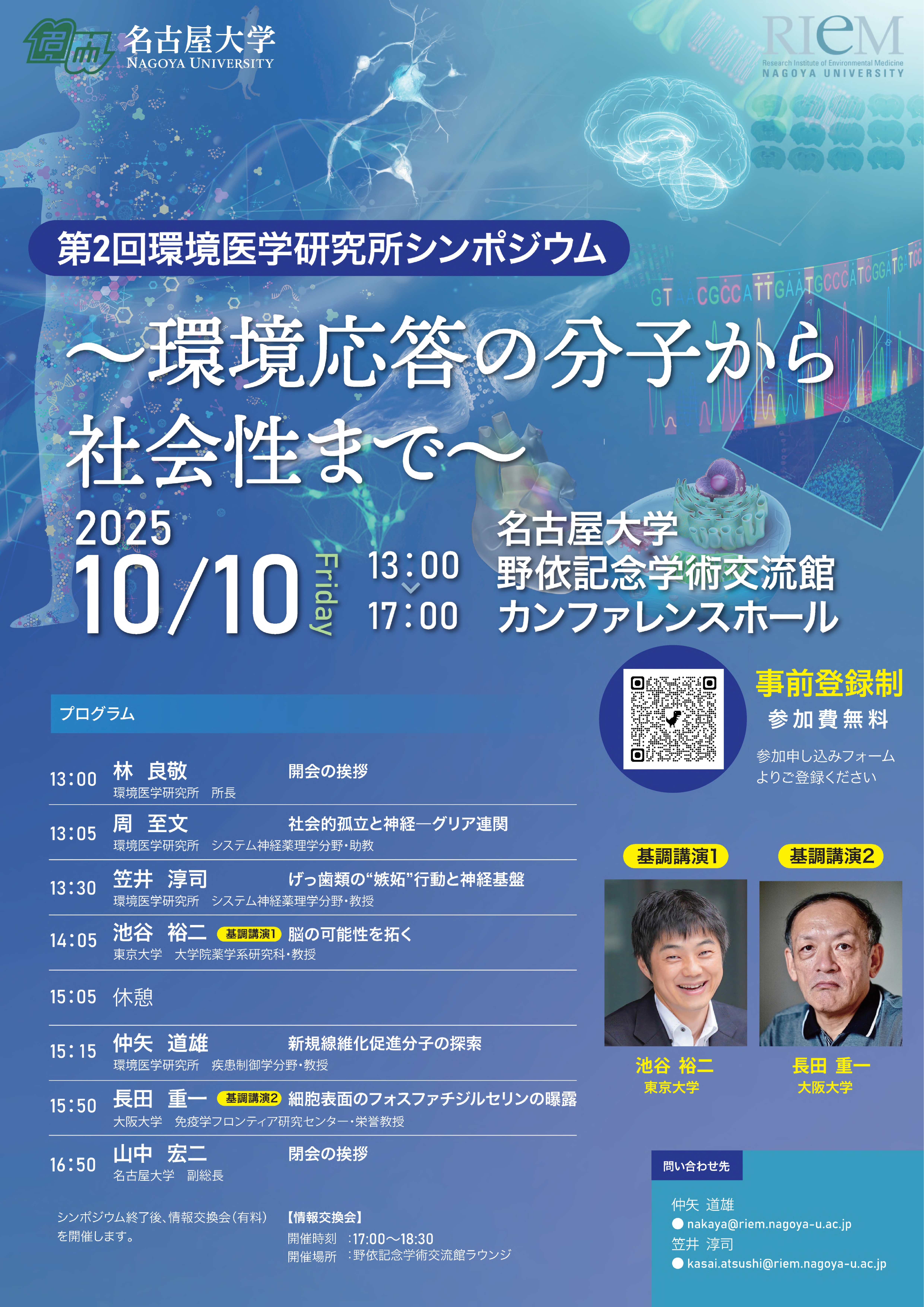 令和7年10月14日(火) 17:00-18:30 名古屋大学 環境医学研究所 南館大会議室(東山)
